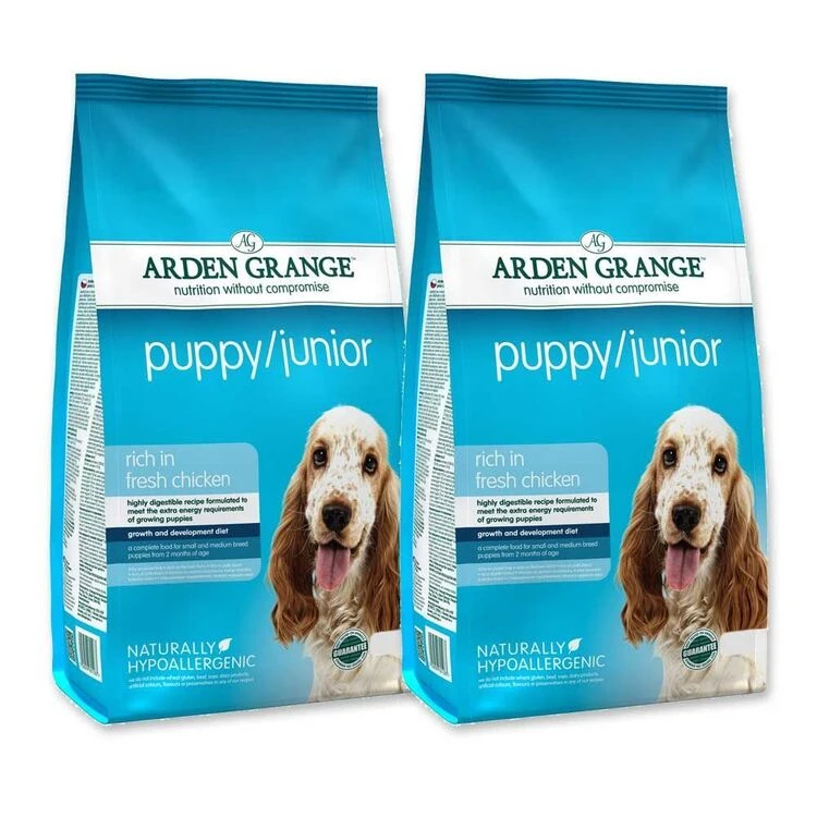 Arden Grange Puppy/Junior dog food with fresh chicken and rice is perfect for small to medium breed puppies and has been specially developed to meet their ever-changing developmental needs. Higher in energy than meals developed for adult dogs, this dry puppy food includes fresh sources of protein and carbohydrate and has been enriched with additional minerals to support skeletal growth and the immune system.