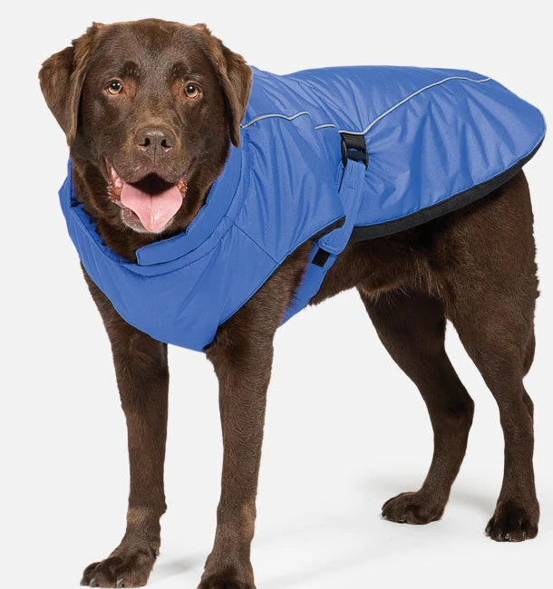 A dog coat perfect for active dogs who love the outdoors. This sports coat has a luxury feel with thermal padding for warmth, full chest protection, and embroidered paw logo.