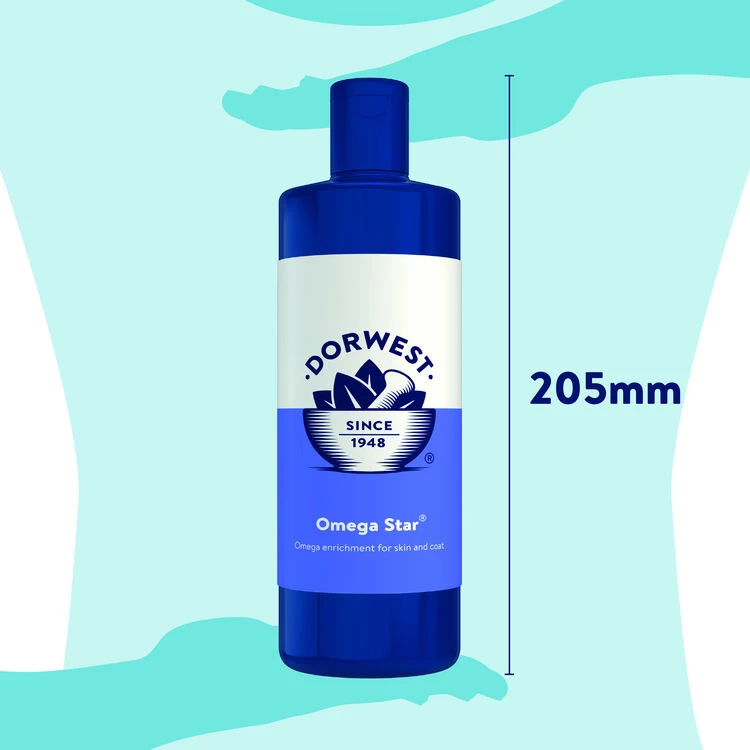 Our Omega Star® For Dogs has gained quite a reputation, containing a carefully created blend of nutritious plant oils, including flaxseed oil, blackcurrant seed oil, borage seed oils and natural vitamin E, to help nourish the skin’s moisture barrier and restore coat shine and hair growth.