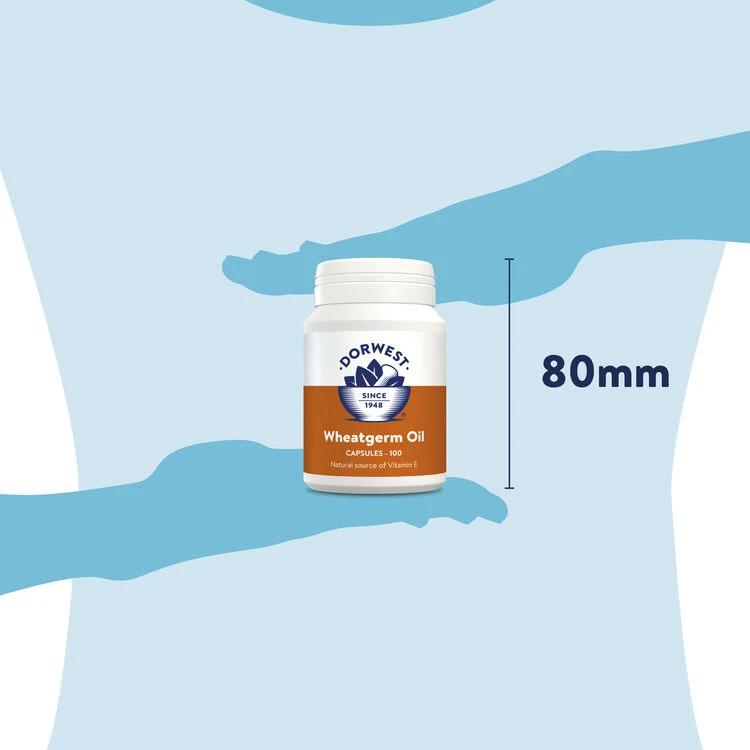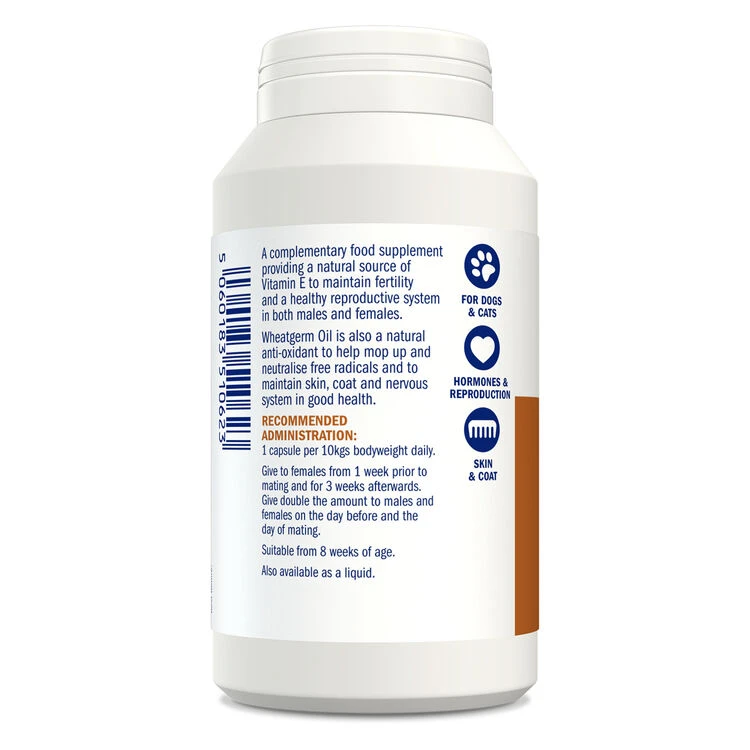 Wheatgerm Oil Capsules are a natural source of Vitamin E which helps skin, coat and maintains fertility in dogs and cats.