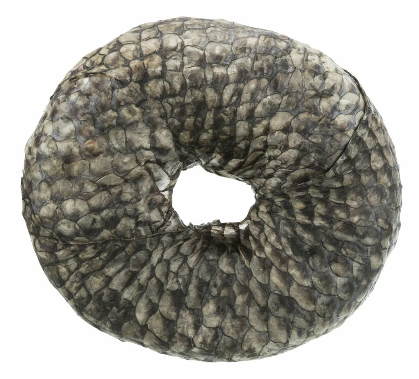 - Made of dried rawhide wrapped in fish